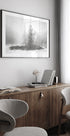 En stemningsfuld vinterscene af Jivko Nakev: sneklædte graner forsvinder i tåge, mens blide gråtoner tegner skovens konturer og bjergenes stille dybde. Et roligt, minimalistisk motiv, der indfanger kuldens poesi, nordisk ro og den stille vandring ind i naturens mystik. Perfekt til at skabe dybde og eftertanke i stuen, soveværelset eller kontoret.