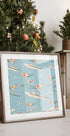 En retroinspireret skiplakat i kølige blå nuancer, hvor en elegant skiløber skærer gennem sneen foran stiliserede bjergsilhuetter. Grafiske linjer og vintage-æstetik giver motivet en tidløs vinterstemning. Skabt af Susana Costa – perfekt til at bringe dynamik og alpine drømme ind i hjemmet. En subtil hyldest til klassisk skisport.