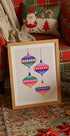 En rolig, minimalistisk juleplakat af Kubistika: skarpe, geometriske former samler sig til en stiliseret fyr, bløde, sneklædte flader og en glødende himmelkugle. Dæmpede, neutrale vintertoner og præcise linjer skaber en moderne, skandinavisk stemning—perfekt til en elegant, festlig væg. Diskret julestemning, maksimal ro.