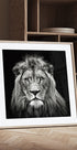 Et dramatisk, sort-hvidt portræt af en ung hanløve, fanget i lavnøgle-lys med intens blik og majestætisk begyndende manke. Christian Meermann indfanger dyrets styrke og sårbarhed i et tidløst close-up, hvor teksturen i pels og skygger skaber ro, dybde og moderne, minimalistisk elegance. Perfekt som blikfang i stue, kontor eller galleri.