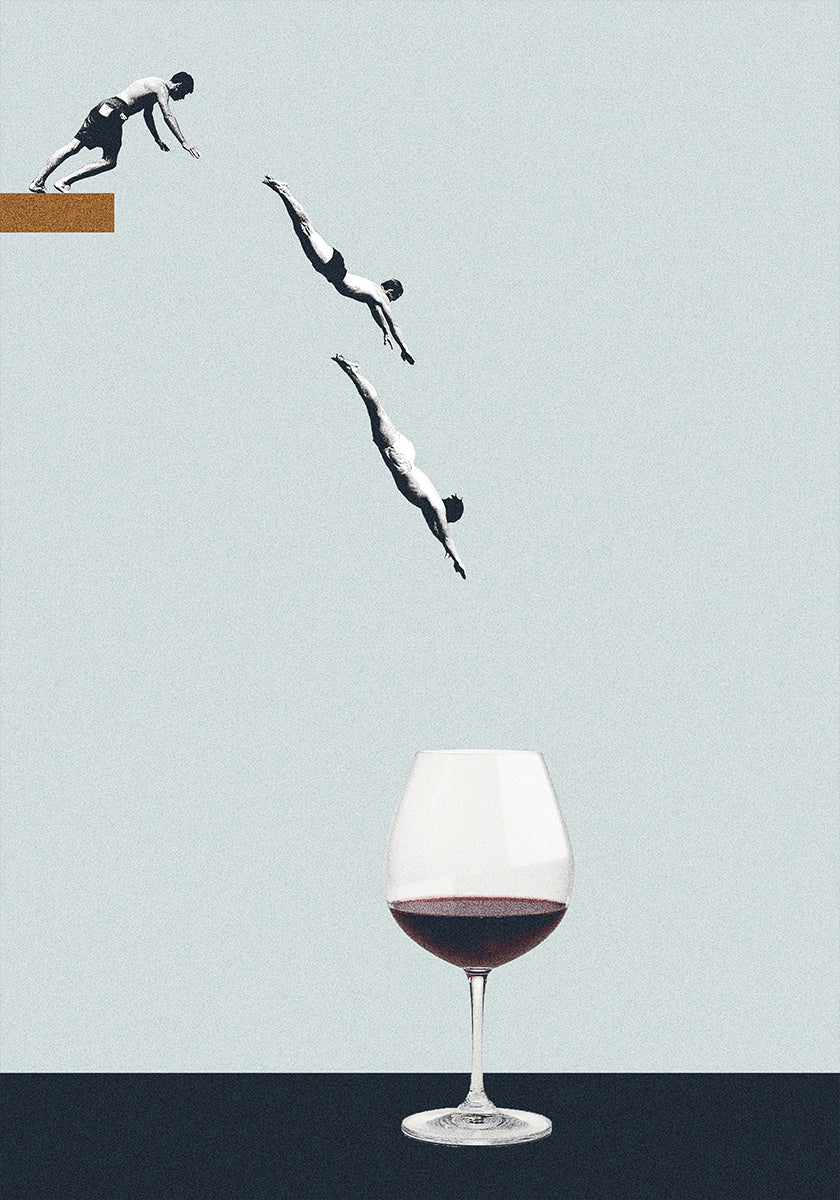 Et vittigt og minimalistisk kunsttryk, der viser et perfekt dyk – lige ned i et glas rødvin. Med sit legende koncept og rene komposition passer dette værk perfekt i køkkener, spisestuer eller ethvert rum, der omfavner humor med et strejf af sofistikation. En sjov samtalestarter for vinelskere og designentusiaster.