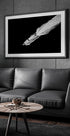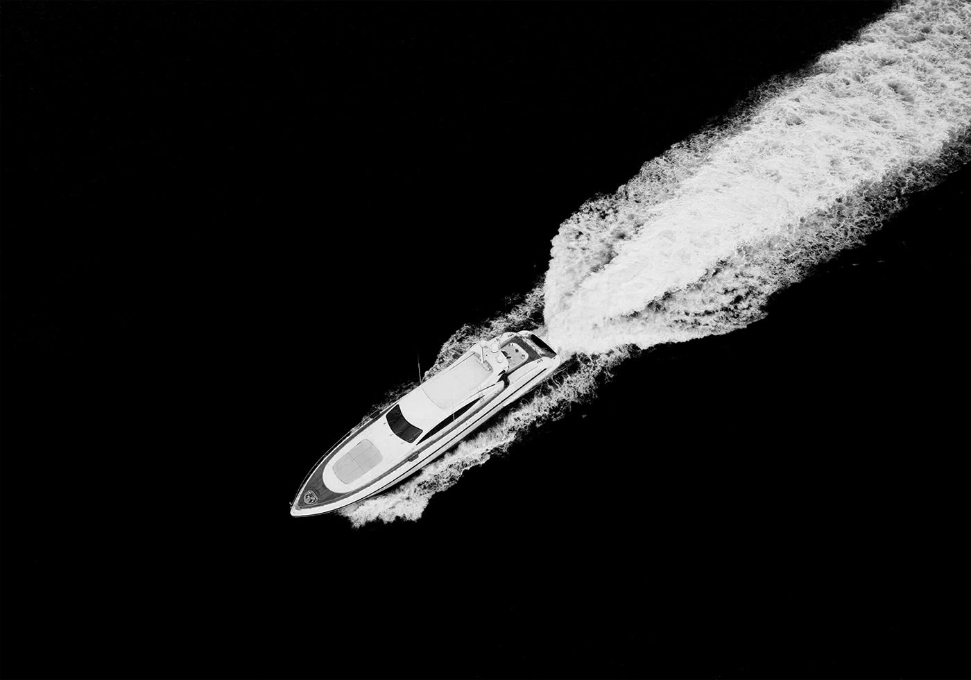 En elegant yacht skærer gennem det mørke vand i markant kontrast, fanget ovenfra i raffineret monokrom. Dette minimalistiske motiv hylder frihed, præcision og bevægelsens æstetik – ideelt til moderne indretninger med sans for stil og ro.